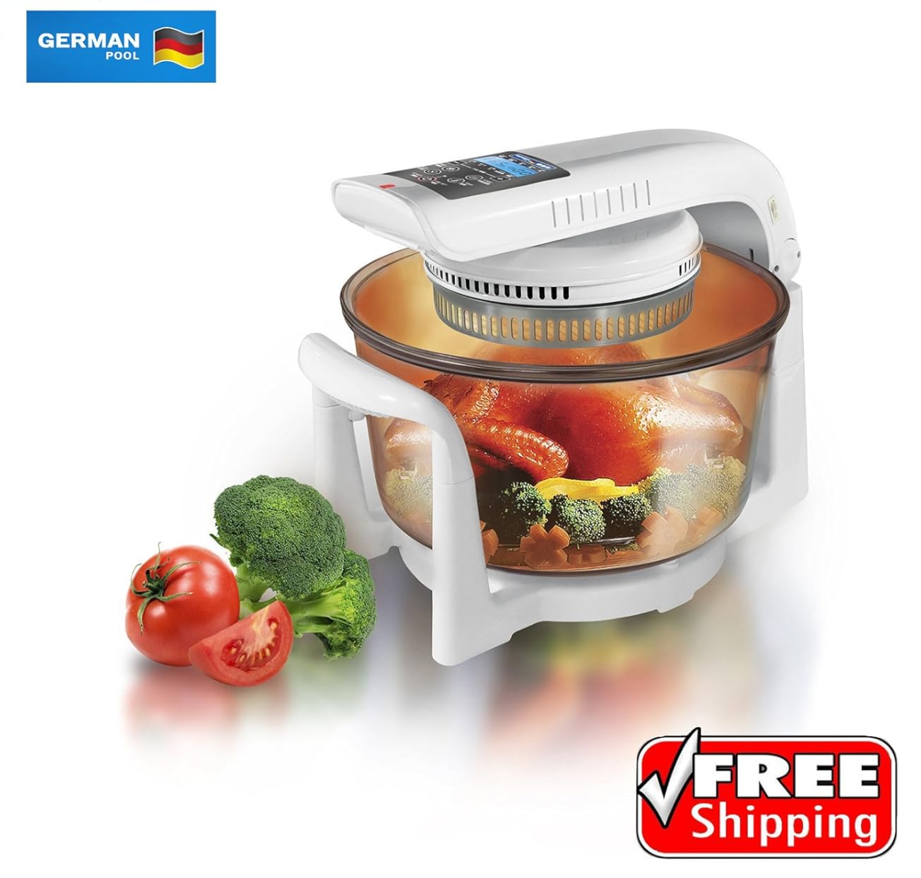You buy German Pool 120V 12 Litre Halogen Cooking Pot (CKY-788) Bundled with "A Taste of Korean Drama Inspired Home Cooking" Cookbook with Coupon : ROFO30 will be discounted 30% price large capacity countertop oven from Oster features convection baking to circulate hot air throughout the oven for flakier crusts, crispier edges and even-browning in less time. An entirely digital control panel offers precise heat and time adjustments plus several preset cooking functions to properly bake your food. You can also select the exact toast shade you desire, from light to dark. You can even cook worry-free with the 90-minute countdown timer that automatically shuts off the oven once complete.