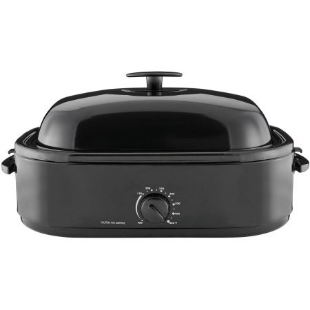 • The Mainstays 20-Pound Turkey Roaster with High-Dome Lid, 14-Quart, Black is a